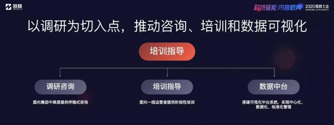 一、私域能否管理好 最重要的是企業矩陣的頂層架構和方法 架構和方法不是憑空而來的,首先來自于扎實的調研。以調研為基礎,我們面向企業中高決策層提供伴隨式咨詢,面向一線人員輸出標準化文檔和培訓,并協助客戶開發了數據中臺系統,把矩陣實時的數據表現、在線文檔和培訓課程、營銷活動可能用到的工具等,都放在這個平臺之上,實現了軟知識和硬系統的結合。