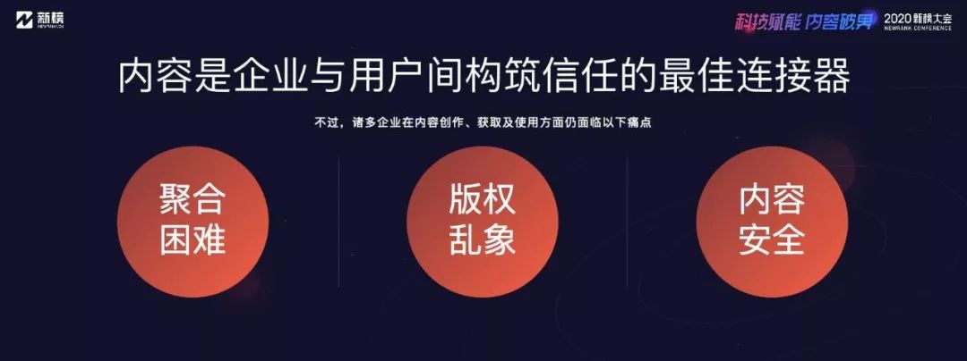 三、內容安全和版權問題 一直是企業私域和新媒體運營的一大困擾 內容是企業和用戶之間的最佳連接器,但企業在創作、獲取和使用內容過程中,面臨三個痛點:1、傳統媒體、MCN機構、頭部KOL、個人作者都可能是潛在的內容合作伙伴,要從中找到合適的優質內容,篩選、BD、聚合的成本都非常高;2、市面上的內容魚龍混雜,文字、圖片版權混亂,缺乏統一的審核和評估,安全風險高;3、自建內容團隊成本高,缺乏精細化運營,內容難以復用。
