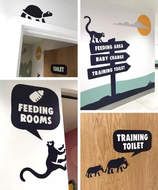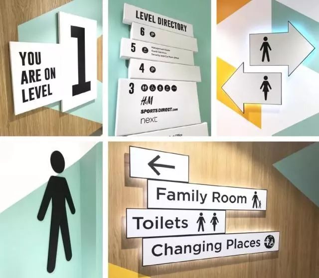 三、系統性與差異性 1、功能使用 在室內游樂場、公園等公共場所往往有很多小孩, 考慮到小孩認字程度的差異, 這里的指示設計就要多做趣味化的考量。 優秀案例 英國Exchange ilford購物中心 Exchange Ilford購物中心位于英國倫敦伊爾福德,擁有便利的公共交通和一系列基礎設施,近日其大廳、衛生間和家庭活動室進行了導視系統設計。