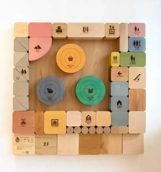 基于項目里的所有游樂設施都是用木頭制成,導視系統提取了木頭元素,設計了立體拼貼的導視板,每個獨立的木塊都代表不同的區域,采用豐富、溫和的色彩區分不同區域,與室內環境相統一且具有趣味性。