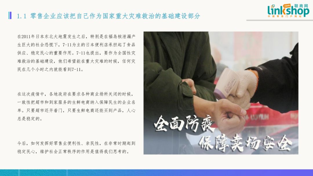 一)零售企業應該把自己作為國家重大災難救治的基礎建設部分