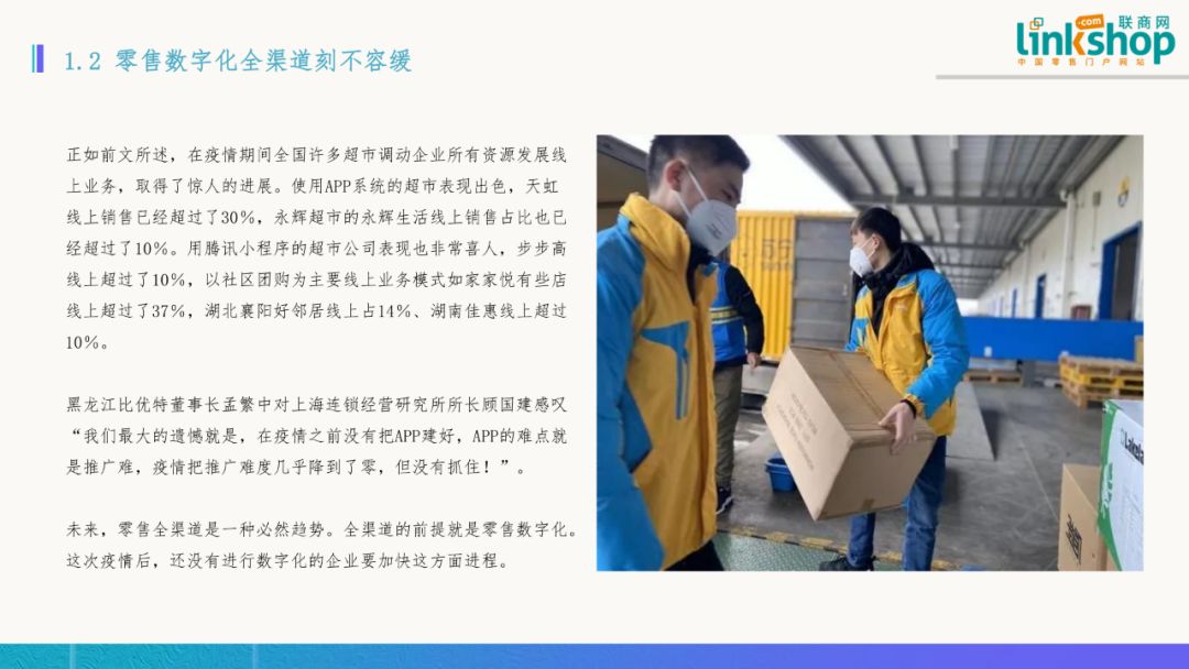 聯商網零售研究中心認為,疫情讓實體零售企業嘗到了數字化全渠道的好處,也讓現有全渠道系統得到了一次檢驗。