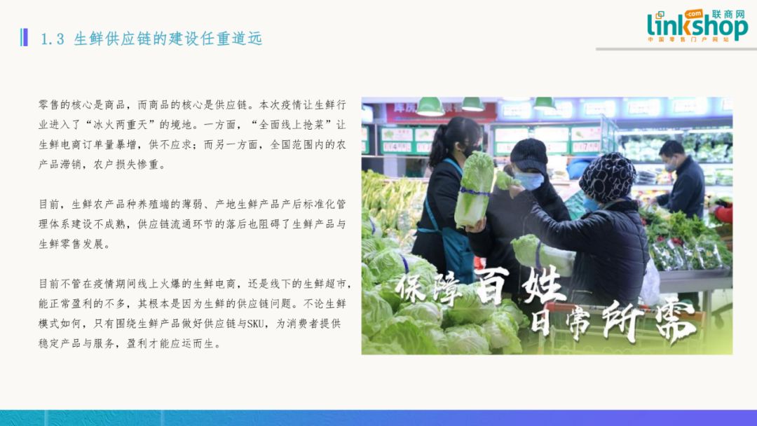 零售的核心是商品,而商品的核心是供應鏈。本次疫情讓生鮮行業進入了“冰火兩重天”的境地。一方面,“全面線上搶菜”讓生鮮電商訂單量暴增,供不應求;而另一方面,全國范圍內的農產品滯銷,農戶損失慘重。