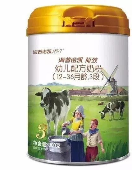比如海普諾凱1897荷致,采用古典油畫風格定格出一幅新鮮的牧場采奶圖,金色高蓋包裝,再結合極具荷蘭特色的人物服飾、風車,充滿異國風情,無一不展現了海普諾凱源自荷蘭的基因,給人一種高端的感覺;