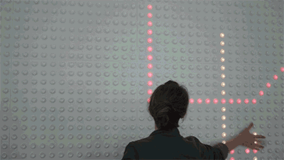Chapter 1 波動墻裝置 其實在我們的生活中,已經出現了很多有趣的公共設施設計,比如這種人機互動可以實時呈現的。