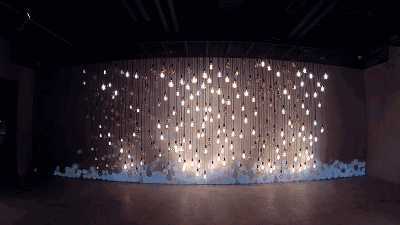 將200多個燈泡垂直懸掛,在交替亮燈的情況下如同閃閃發光的雨滴。 Chapter 2 互動景觀燈