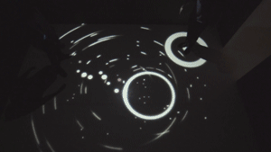 變幻腳下的步伐,投影會隨著人們的動作變化,仿佛聲波一樣擴散。而音樂也會隨之響起。