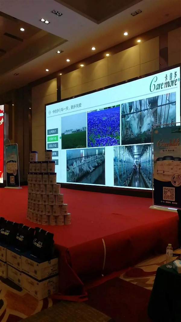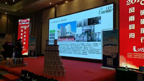 放眼整個展會,擁有自有專屬牧場,以及成熟、專業的服務團隊的卡倍多十分具有競爭力,不僅訪客爆滿,因是獨家贊助品牌,宣講時間上也占有絕對優勢,在整個宣講環節,卡倍多全產業鏈的每個環節,都赫然屏幕之上,足以見得卡倍多的品牌實力!