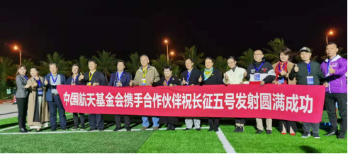 宜品慧賦企業代表與基金會相關負責人合影留念 肩負重任,長征五號再次出征意義重大 27日下午6點,觀禮見證團抵達文昌航天發射場,等待長征五號再次出征的歷史時刻。