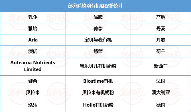 由上表所示,羊奶粉領域達能布局了可瑞康;Nuchev布局了Oli6穎睿;Aotearoa Nutrients Limited布局了寶樂貝兒;羊奶粉銷量第一的佳貝艾特也布局了跨境購渠道,而且據了解,今年雙十一佳貝艾特取得了天貓雙十一羊奶粉品牌銷量榜單第一的好成績,可瑞康和Oli6穎睿也不遜色,分別排名第二和第七,由此可見,跨境購渠道不可小覷。 除筆者上述的部分跨境購羊奶粉品牌之外,此前惠氏大中華區總裁瞿峰透露,惠氏近期也將在香港上市首款羊奶粉,并通過跨境電商的方式銷售至大陸市場,如此一來,惠氏將形成牛奶粉、有機奶粉、羊奶粉、特配粉、孕婦粉等多品類的布局。 除羊奶粉之外,有機奶粉的發展也十分迅速,比如我國有機奶粉從2016年不到20億的市場,以不低于46%的年增速發展至今已接近60億的市場規模,因此筆者也特意盤點了部分跨境購有機嬰配粉: