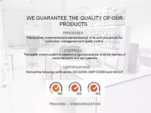 集團對所有的生產、管理和質量控制進行了標準化的工藝流程并嚴格執行。目前已通過ISO 22000、GMP、HACCP等質量認證。