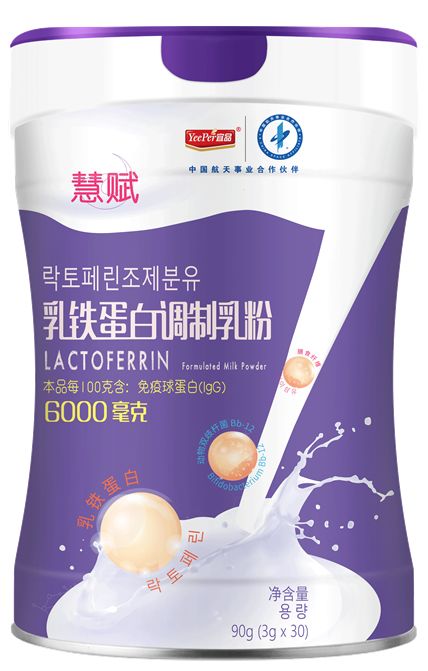 宜品慧賦乳鐵蛋白調制乳粉是宜品慧賦首個來自于韓國工廠的產品,精選牛初乳,按16000:1高純度提取乳鐵蛋白,每百克慧賦乳鐵蛋白中含有100mg。 每百克慧賦乳鐵蛋白調制乳粉中,還特別添加6000mg的免疫球蛋白,同時,它還添加了動物雙歧桿菌Bb-12。 三維立體免疫,賦能初生守護力