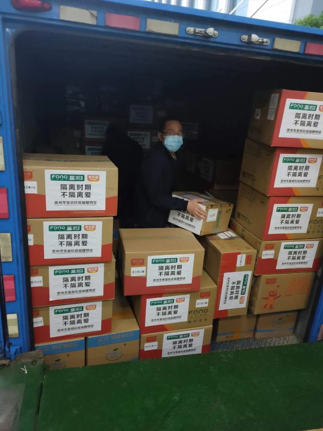 嚴峻的疫情牽動著億萬中國人的心,當大家的目光都集中在武漢、湖北等疫情嚴峻地區時,貧困地區的抗疫條件必然更為艱苦,這一刻,沒有誰是一座孤島。隔離時期,不隔離愛。3月4日,富諾健康股份有限公司(以下簡稱“富諾健康”)“抗擊新冠肺炎專項扶貧愛心車隊”整裝出發,為貴州省黔南州龍里縣送去近七十萬營養物資。