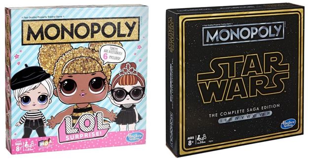 地產大亨保持品牌鮮活力的另一個做法就是孩之寶公司發揮其IP授權玩具開發的優勢,推出多款地產大亨聯名款,與之合作的IP包括冰雪奇緣、堡壘之夜、權力的游戲、馬里奧、賽車總動員、星球大戰等,甚至和L.O.L. SURPRISE! 合作,推出《地產大亨:L.O.L. SURPRISE! 》版本。