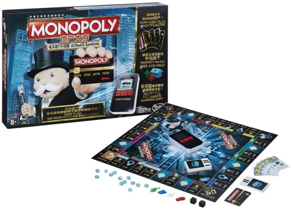 比如這款《地產大亨電子銀行升級版》,順應當下生活中無現金交易的變化,特別設計用電子銀行機替換了之前游戲中的“銀行家”,而且取消了游戲中的現金交易,改為由電子銀行為玩家支付購買及收取租金。