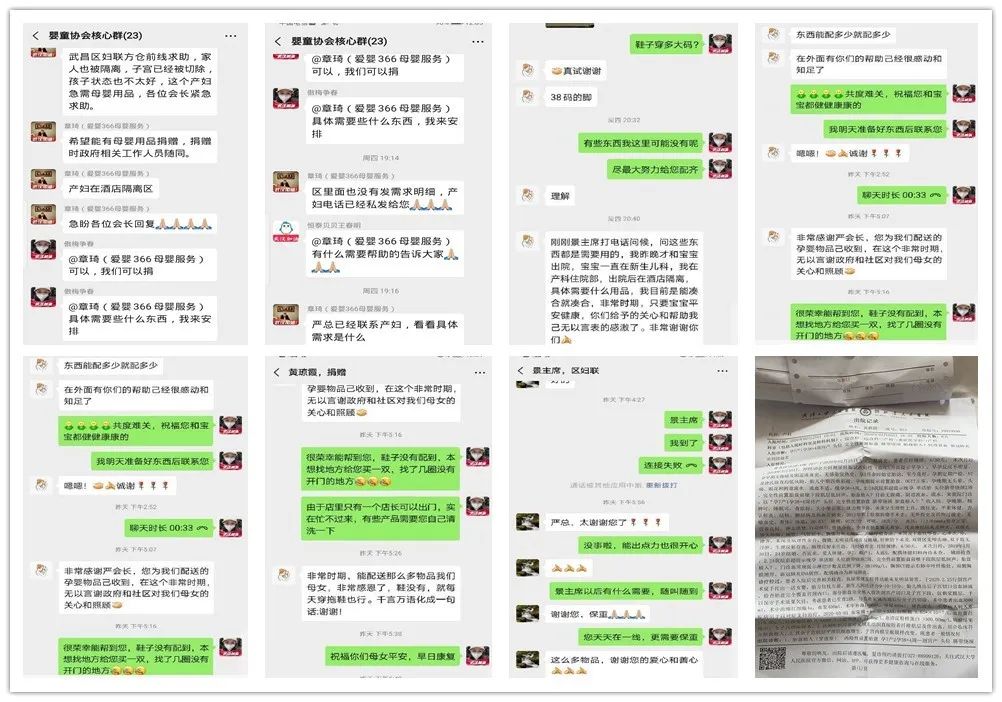2020年3月5日,湖北省嬰童用品協會接到武昌區婦聯轉來的一個求助電話,武昌區婦聯轉述,方艙醫院一名產婦因為家人新冠肺炎核酸檢測為陽性被隔離,她剖腹產后大出血,子宮被切除,生下不久的孩子狀態又不好,而緊急求助母嬰用品…… 當天,這條求助信息通過協會微信群轉發后,便迅速得到了會長們的積極響應。湖北省嬰童用品協會副會長、武漢愛滿滿孕嬰用品有限責任公司總經理嚴進梅,見到求助信息,立刻與武昌區婦聯主席景萍取得了聯系,并初步了解了求助者的一些基本訴求。 原來,這名產婦叫黃群霞,來自漢川分水鎮淤洲村。2月23日,黃群霞在丈夫陪同下,前往武漢大學人民醫院湖北省人民醫院待產。2月25日,黃群霞因剖腹產大出血,子宮被切除,剛生產下的孩子體質差,丈夫又因查出新冠肺炎核酸陽性被隔離,屬于新冠肺炎密切接觸者的黃群霞,3月4日出院后被隔離在武昌區黃鶴樓街密切接觸者集中觀察點。此時,由于她身體虛弱,孩子狀況差,急需母嬰用品,火燒火燎的她,先是找人網上求助,后來尋求社區幫助,這才最終引起武昌區婦聯主席景萍的關注。