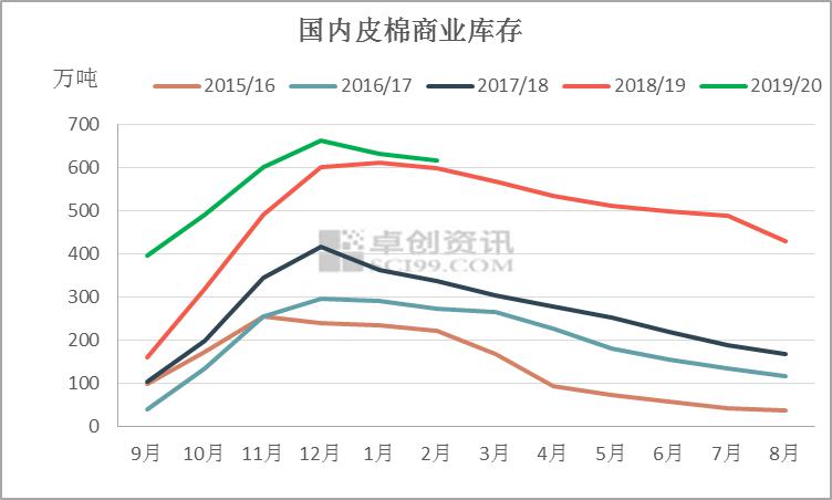 春節后受公共衛生事件影響,市場對于全球棉花(12325, -100.00, -0.80%)消費預期下滑,棉花市場巨震,鄭棉最大跌幅達10.4%。雖下游紡織、服裝企業陸續復工,但短期棉花需求尚處于弱勢,且市場情緒低迷,棉價上漲缺乏有效驅動,預計短期或延續低位震蕩走勢。 高庫存壓力對棉價反彈空間形成限制