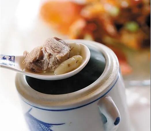 制法:豬脊骨飛水去肉腥,與淮山、枸杞子同置于砂鍋內,加適量清水煮湯,沸后轉慢火煮2小時,加少許鹽后即可食用。