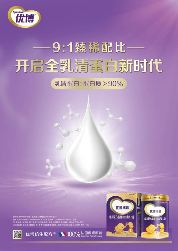 什么是乳清蛋白? 乳清蛋白是采用先進工藝從牛奶中分離提取出來的珍貴蛋白質,乳清蛋白中50%為β-乳球蛋白,20%為α-乳白蛋白,主要成分還有免疫球蛋白及乳鐵蛋白,每種蛋白都具有其獨特的生物活性。 有研究發現,乳清蛋白會引起餐后血漿膽固醇濃度快速、大幅的升高,蛋白質合成速率提高68%,所以在嬰幼兒配方奶粉中通常采用提高乳清蛋白的辦法,而乳清蛋白要提高到多少,才是合理的呢? 解鎖初乳,科學配比 母乳和初乳的優勢,不可否認,但初乳的存續時間較為短暫,且量太少。 優博瑞慕深度研究中國母乳初乳,在優博仿生配方®的基礎上,采用全球先進科技,突破性地研制出全乳清蛋白配方,以高油乳清粉為生產基料,乳清蛋白和酪蛋白比例達到9:1,而目前大多數奶粉乳清蛋白和酪蛋白的比例僅在6:4左右。