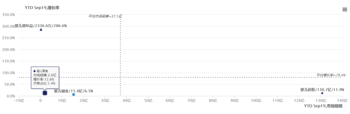 隨著新生代母嬰家庭優生優育的觀念增強,注重精細化喂養,同時城鄉消費差距在縮小,嬰幼兒食品在下沉市場也有極強的滲透率,嬰幼兒食品產業正在高速發展。 中國兒童產業中心公布的數據顯示,80%家庭中兒童支出占家庭支出的30%~50%,家庭兒童消費平均為1.7萬~2.55萬元,兒童消費市場每年約為3.9 萬億~5.9 萬億元。其中在兒童的日常消費中,零食是一項重要的支出。花旗統計報告顯示,去年全球零食銷售額高達6,050億美元,兒童就是最大的金主之一。可見,未來兒童零食市場大有可為。 數據顯示,0-3歲嬰幼兒人口數約5千萬,3-12歲兒童人口數為1.46億,是嬰幼兒的3倍。根據消費者調研,兒童零食人均年消費額是嬰兒輔食的4倍以上。同時根據QYResearch的《2018年全球兒童零食市場研究報告》,從2018年到2023年,兒童零食市場預計將以10%到15%的復合年增長率穩定增長。情報通數據顯示,僅線上嬰兒零食,近兩年一直在高速增長,遠超嬰兒奶粉和嬰兒輔食,2019年前三季度,嬰兒零食線上增速達12.6%。