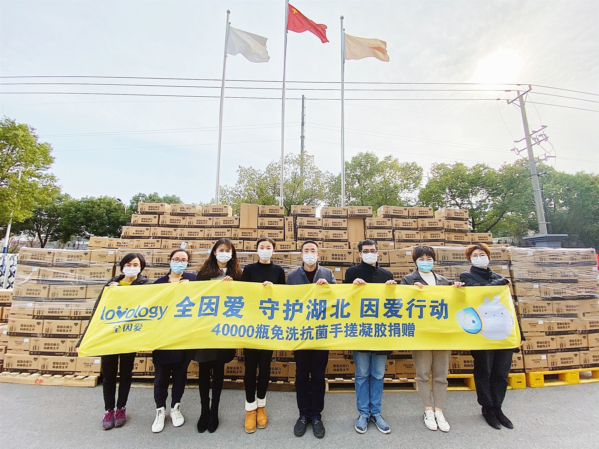抗疫隔離期間,孩子們戴上口罩 守護湖北,因愛行動。3月10日,全因愛專門發起針對湖北和武漢重疫情地區的公益捐贈活動,共計捐贈40000瓶全因愛免洗抗菌手搓凝膠至協和、同濟等一線抗疫醫療機構。在國內外醫療物資供應依然十分緊張的情況下,全因愛排除萬難以最快速度產出、送達這批物資,支援湖北武漢抗擊疫情。