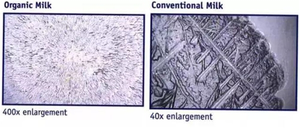 近年來,有機食品備受青睞,市場上有了有機大米、有機蔬菜、有機水果、有機奶等。 有機食品的主要特點來自于生態良好的有機農業生產體系.有機食品的生產和加工,不使用任何的化學農藥、化肥、化學防腐劑、飼料添加劑等,也不用基因工程生物及其產物,因此,有機食品是一類真正來自于自然、富營養、高品質和安全環保的生態食品。 可是外表近乎相同的牛奶、蔬菜、水果,有機的和非有機的到底有什么區別? 為什么有機食品會更好吃? 有機和非有機食品內部有不同嗎? 來自德國生物動力農業研究所三種有機食物與非有機食物 細胞切片對比圖,讓我們接近真相。 01 第一組有機VS非有機牛奶細胞對比圖