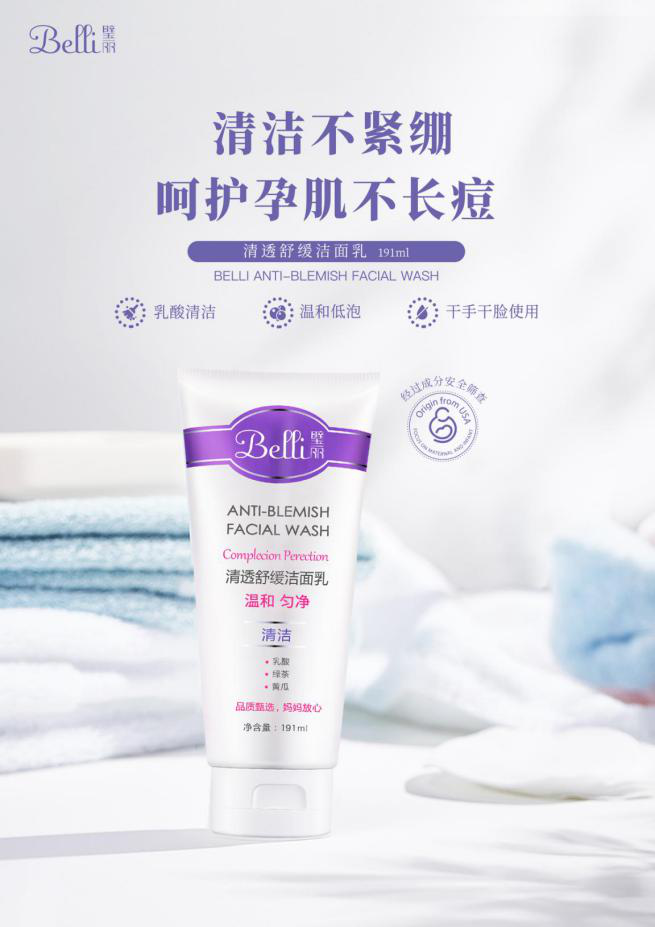2020一場新冠病毒疫情,讓全國人民在家宅了一個多月,專家提醒戴口罩勤洗手是個人防護的基礎。經過多方的努力,全國疫情得到較好的控制,近期除了湖北以外的省市,人們的生活和工作逐漸恢復,對于陸續復工的職場孕媽和寶媽,更要注意做好安全防護,少去人員密集的公共場所,在辦公室也要戴好口罩。 但是很多孕媽媽反饋說,雖然最近不怎么化妝但肌膚小狀況頻現,什么敏感干燥,出油,粉刺等,不知道是不是經常戴口罩的原因,尤其是最近總是就容易出現爆痘的情況,好不苦惱,面對這種情況應該怎么解決呢? 孕期臉上容易長痘痘的原因 1、孕激素影響 懷孕期間,由于女性體內激素水平的變化,皮脂腺的分泌也較之前旺盛,很多平不怎么有粉刺痘痘困擾的孕媽媽們也更容易長。 2、皮膚清潔沒做好 長痘和肌膚清潔也是緊密相關的,如果皮膚清潔度不夠,過多的皮脂淤積在毛囊內,堵塞毛囊的導管,再加上脂肪酸和毛囊內細菌的作用本就容易長痘。 3、長期戴口罩 長時間戴口罩,面部肌膚處于相對悶熱潮濕的環境,為細菌和微生物提供了溫床,肌膚也會更容易出現出油、長閉口、粉刺、痘痘等肌膚問題。 孕期長痘痘怎么調理? 1、注意肌膚的清潔 首先,要做好日常面部清潔的工作,在疫情期間潔面很重要。 美國孕產期專用護膚品牌的Belli清透舒緩潔面乳,這款潔面選用嚴苛成分安全篩選的成分——乳酸(AHA),乳酸是一種本身就自然存在于人體中的安全成分。這款潔面是透明啫喱狀,值得一提的是它的溫和性,除了做潔面還能作清潔面膜使用,能夠滿足孕期肌膚的清潔需求。