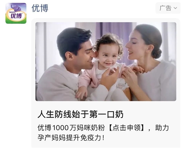 為了將這份愛擴散開來,被更多特殊群體知曉,優博還在微信朋友圈進行了廣告投放,盡最大的努力讓公益力量驅散疫情陰霾。如果有需要的消費者可以點擊文末“閱讀原文”,優博的這份善意等您來帶走。