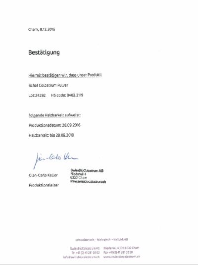 羊初乳瑞士原產地證明(右)