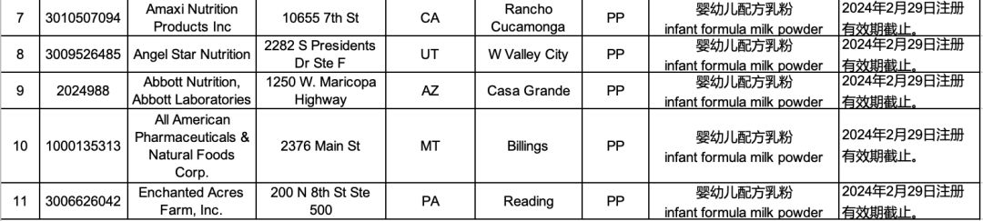 我們先逐一來看看這次在美國名單中新增的5家工廠。根據海關總署的資料,它們的注冊產品均為“嬰幼兒配方乳粉”,均為2024年2月29日注冊有效期截止。