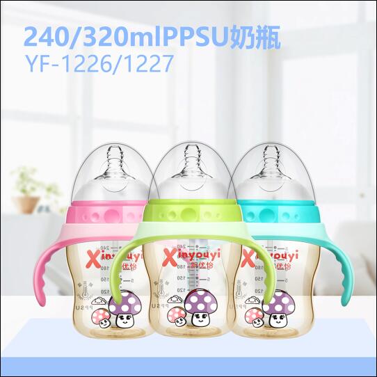 新優怡嬰兒PPSU奶瓶系列特點 新優怡嬰兒PPSU奶瓶采用優質食品級聚丙烯原料,精制而成不含雙酚A,耐高溫,多次煮沸,消毒不變形。特性:比重低,半透明,光澤度高;成品表面硬度大,耐磨損性,抗氧化性,耐熱溫度達180攝氏度;抗多種有機溶劑和酸堿腐蝕。 新優怡嬰兒PP奶瓶系列設計高級防脹氣自動感溫奶瓶,專為新生兒設計,保護bao--bao的健康,我們更專業,媽媽請放心。 |