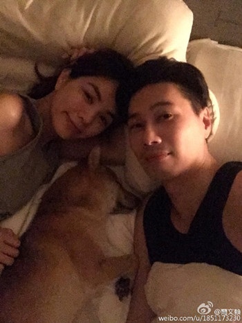 昨晚,Ella的老公在微博中曬出夫妻倆“床照”,狗女兒布丁夾在兩人中間,一家人的畫面看來相當有愛。并在文中寫到:“喂狗糧時間、拉仇恨時間、全家福時間,布丁我們回來了”。
