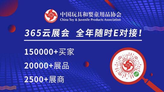 “365云展會”平臺成效顯著,200萬次瀏覽精準E對接 中玩協“365云展會”平臺成效顯著,目前,已有2500+展商入駐,囊括20,000+玩具及嬰童用品產品、1800+IP,同時,還聚集了玩具、嬰童、幼教用品的渠道商、零售連鎖機構、教育機構、商業地產等150,000+買家,瀏覽量超2,000,000+人次,一對一精準云服務,引導行業企業全年隨時E對接,助力參展、參觀成效更好!