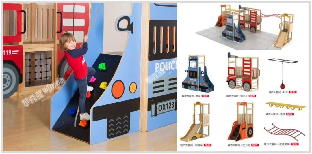 目前,華森葳還推出感統體能教室,為幼兒提供了專用室內體能的鍛煉場地,讓孩子的體能素質鍛煉不再受天氣氣候等客觀因素的限制。這套感統教室由城市大冒險、攀爬墻與迷宮三款感統家具構成,將游樂場融入幼兒園室內場所,為孩子們帶來感覺統合的新體驗。 在城市大冒險中,有造型獨特的巴士、消防車、警車感統器、秋千、波浪爬梯等等,充分滿足孩子的感官體驗,在攀爬玩耍中激發孩子探索的好奇心。城市攀爬墻,有恐龍、汽車、建筑、太空火箭等12種主題可供選擇,不僅為孩子營造了豐富的游戲氛圍,也讓幼兒的攀爬活動更具趣味性。