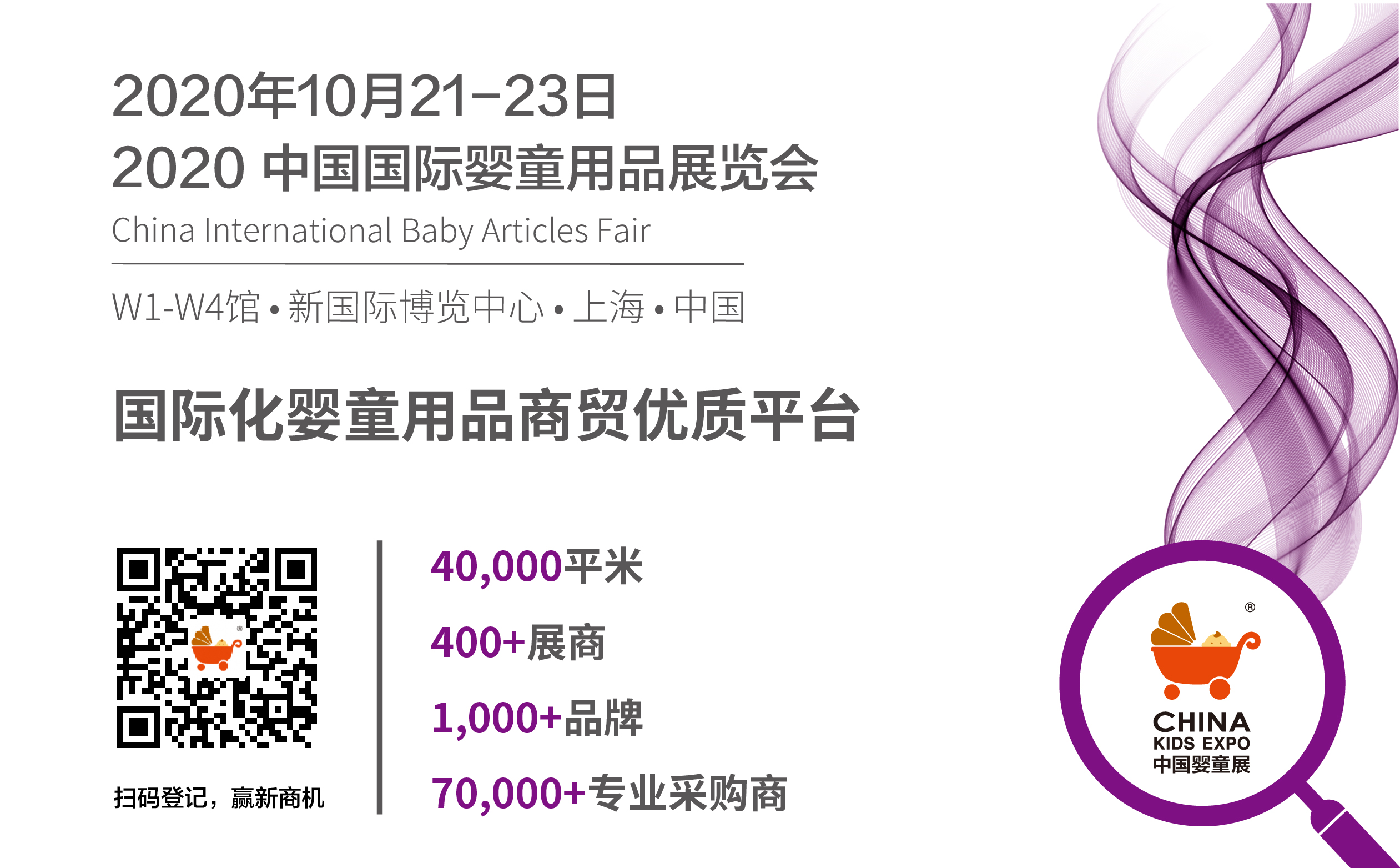 2020年CLE中國授權展、CKE中國嬰童展、CTE中國玩具展、CPE中國幼教展于10月21-23日在上海新國際博覽中心四展同臺,老時間、老地點、成效更好。目前,參展申請及參觀登記系統全面開放,百度搜索CKE中國嬰童展,登陸官網(cn.china-kids-expo.com),點擊企業搶訂展位或買家登記采購即可參與。 |