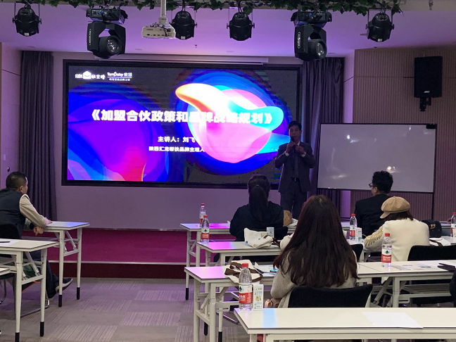 最后陜西匯龍幫扶品牌主理人劉飛為大家詳細的介紹了兩個品牌的未來規劃和公司的加盟政策,讓大家更加全面的了解童慧和萌寶塘。