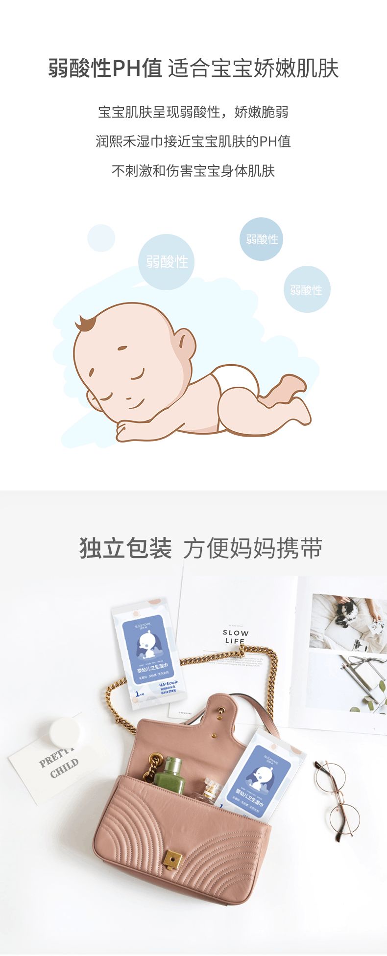 | 用潤熙禾嬰幼兒專用濕巾擦除寶寶的不安 |