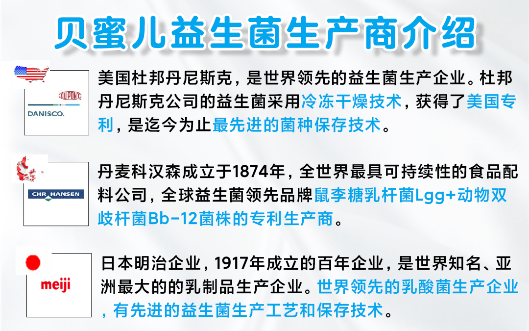 貝蜜兒關注生命早期1000天的營養攝入和腸道健康,在16年的發展歷程中,持續在益生菌品類發力,選用進口菌株,創新和發展益生菌相關技術,致力打造優質、安全、可信賴的益生菌產品。