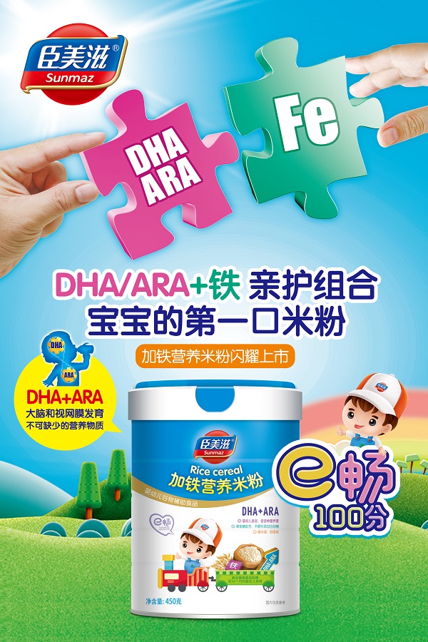 3歲以下嬰幼兒腦細胞快速增長期,直接影響到寶寶的智力發育。適量的補充DHA和ARA能夠有效的促進大腦的發育和視力的發育,臣美滋研發團隊根據嬰幼兒營養需求精心研發出加鋅鐵營養配方米粉,其營養配比更科學,工藝更精湛,具有易消化、好吸收、口感好的優勢特點,深受家長們的認可和喜愛。