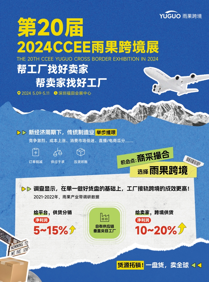 2024中國·深圳跨境電商展會_汽配五金_消費電子_燈飾照明 2024第二十屆深圳CCEE雨果跨境展覽會 時間:2024年5月9-11日 地點:深圳會展中心(福田) 報名咨詢:王經理135-6458-6038(兼微信) 承辦單位:雨果網(深圳)跨境電商有限公司 品牌展商1000+ 展會面積30000+ 參展賣家30000+