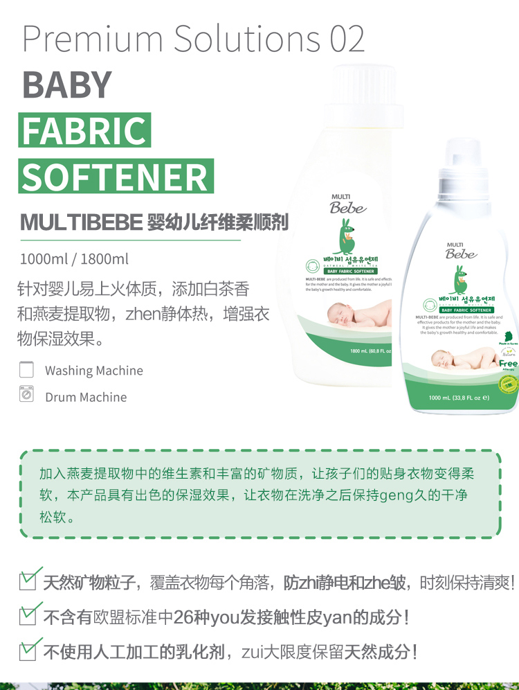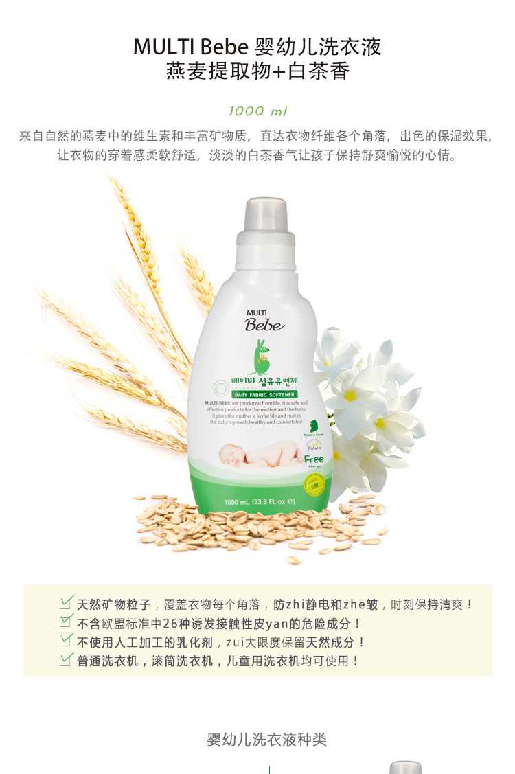 MULTIBebe莫托波比韓國原裝進口嬰幼兒衣物柔順劑1000ml