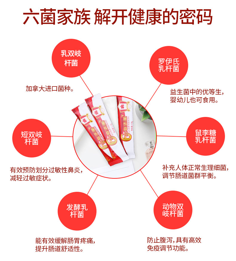 【配料表】食用葡萄糖、發酵乳桿菌(添加量:1.5%)、鼠李糖乳桿菌(添加量:1%)、乳雙岐桿菌(添加量:1%)、羅伊氏乳桿菌(添加量:1%)、短雙岐桿菌(添加量:1%)、甜橙果粉、動物雙歧桿菌(添加量:0.4%)